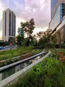 Parade Building is a shopping center and department store with 9 floors. The front is decorated with colorful flowers and large green ornamental plants, interspersed with beautiful fountains. It’s very picturesque for photos in the evening, with the green garden contrasting against the golden sky of the setting sun. Highly recommended to come and capture the atmosphere; it’s one of the best spots for taking beautiful photos.