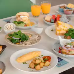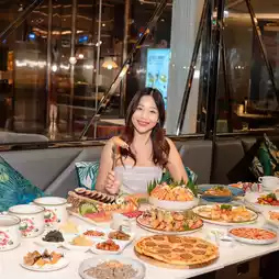 There is a fitness center and a beautiful bar called 𝟮𝟭𝟮 𝗥𝗼𝗼𝗳𝘁𝗼𝗽 𝗕𝗮𝗿. In the evening, you can relax, enjoy music, and sip your favorite drink. For buffet lovers, the dinner buffet features large river prawns and a full range of delicious dishes with unlimited servings. The international breakfast buffet offers a variety of menu options.