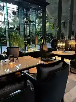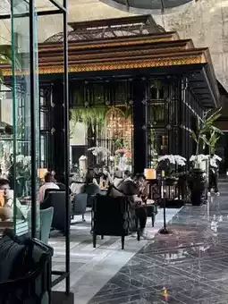 This time, the Sindhorn Kempinski Hotel is completely different. Located in the business district with convenient transportation, the building features black and gray curved streamlined architecture surrounded by greenery and trees, focusing on health and wellness. The lobby on the first floor is a popular spot for afternoon tea and social media photos.
