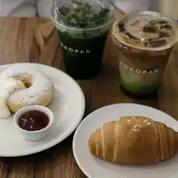 Kokopan Café is located in Block 28 Samyan. It is a small Japanese-style café known for its homemade baked goods, especially croissants that are freshly baked every day. The dough is crispy on the outside, soft on the inside, and fragrant with real butter. Popular menu items include classic croissants, croffle donuts, and Kokuto Latte with a smooth flavor. The matcha latte is also rich and not too sweet. The café’s atmosphere is simply decorated and cozy, perfect for working or casual conversations. There are not many tables, so it’s quite quiet. Prices are moderate, starting from ~฿30–฿160, and it is very close to Samyan MRT, making it very convenient to walk to.