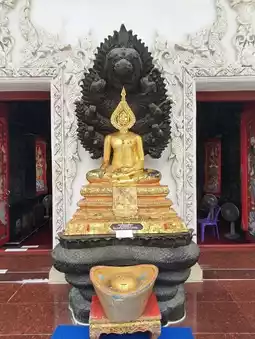 🙇♀️ Pay respects to “Luang Pho Nak Prok,” the sacred Buddha image in the Nak Prok posture enshrined in the ubosot, allowing devotees to pay homage for good luck 🌈🐍