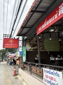 Sae Lee’s Noodles, Mengjai Branch (opposite Makro Mengjai) is a roadside shop specializing in egg noodles made fresh daily. The noodles are chewy and soft with an original recipe, delicious when eaten with red pork, roasted duck, crispy pork, and hot soup with just the right flavor. The shop also offers other dishes such as fried rice and snacks. Another recommended dish is Sae Lee’s fried rice, a favorite among many for its perfect stir-fry. The service is fast.