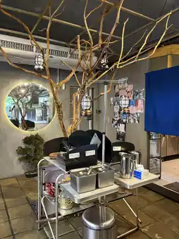 BANGABANGA is a Korean restaurant located at Soi Phahonyothin 32/1 (Senanikom). The restaurant is decorated with a "Korean camping" concept, using gray tones. The tables and chairs are in a simple folding camp style but look cool, giving the feeling of grilling in the middle of a forest in Korea.