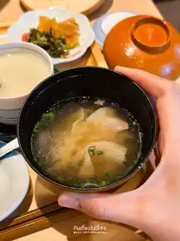 What I like the most is probably the soup, which is well-seasoned with ingredients I enjoy. The broth is rich and flavorful. The only downside is that you can’t get refills. For the main dish, I chose the pork loin with a nice amount of marbling. The set costs 350 baht.