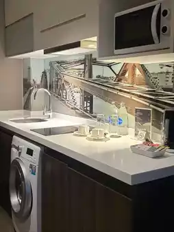 I booked for 2 nights because I had an event in Bangkok. The service was good, the staff were lovely. The room I got was a standard room, very spacious. The amenities were complete, including free WiFi, iron, ironing board, washing machine, toaster, electric kettle, microwave, sink, induction stove, refrigerator, hairdryer, speaker, and safe—everything you need.