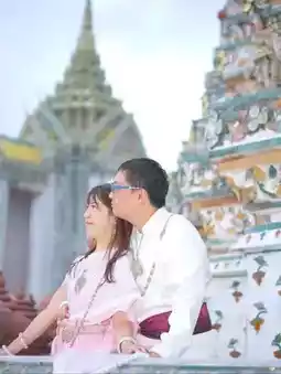 The photographer taught us lots of poses, so don't worry. Even those with physical disabilities were there to guide us. It seems like over 70% of people visiting Wat Arun come here to take beautiful photos in Thai attire. 🤩🎉 Many people take photos of Thai attire at Wat Arun, hoping to create some wonderful memories of their trip❗
