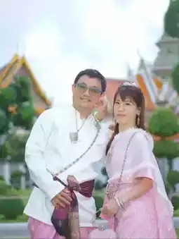 Because I had an ideal Thai dress style and color in mind before the shoot, I immediately communicated with the store owner. The store owner was very friendly and spoke Chinese, making communication easy. He also helped my husband masterfully put together a perfect outfit. It felt seamless, and I even secretly took a sideways photo. My husband looked like he was in a martial arts movie!😆👍