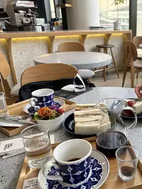 The desserts are just as impressive! Burnt Cheesecake, Financier, or Croissant are all delightful. Every corner is perfect for aesthetic photos. The café is decorated in a modern loft style with wood and concrete tones, natural light flows in beautifully, the bar area is cool, and the window seats are clean 📸