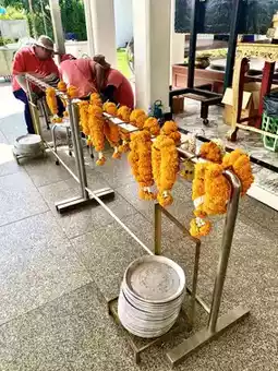 - Pay respects to the five guardian deities by offering five garlands. The five guardian deities are: Phra Suea Muang, Phra Song Muang, Phra Kan Chai Sri, Chao Jet Kup, and Chao Hok Klong