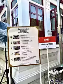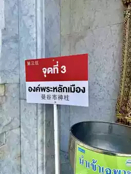 - Pay respects to the replica city pillar, offer incense and candles, and apply gold leaf while tying a three-colored cloth around the replica city pillar, ensuring all three pieces are tied simultaneously