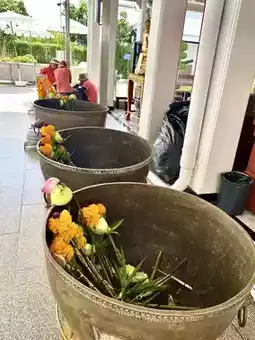 - Pay respects to the Buddha image, the sacred relics, and offer one lotus flower without lighting incense or candles