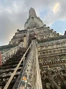 • Famous for its central prang, about 82 meters tall, decorated with colorful glazed tiles and seashells