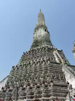 🪷Wat Arun Ratchawararam, or "Wat Jaeng," is located along the Chao Phraya River, distinguished by its large prang decorated beautifully with pieces of porcelain and seashells. Especially in the morning or evening, it reflects the sunlight beautifully, making it a popular photo spot for both Thai and international tourists.
