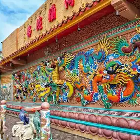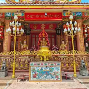 🏠 The ubosot (ordination hall) with beautiful Chinese-style art, housing a large principal Buddha image.