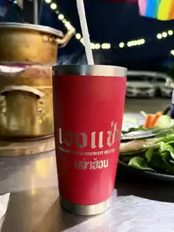 Today, I’m taking you all to try the famous Jaew Hon restaurant that has tons of reviews. Is it really delicious? You have to try it yourself. The restaurant has a wide variety of menus, all very appetizing. The atmosphere is quite good. What impressed me the most was the excellent service from the staff, who all wore aprons and hairnets, making everything look clean. I really liked the cups at the restaurant—they use Yeti cups, which are the best. We ordered the Jaew Hon set, which includes a mix of vegetables. If it’s not enough, you can order more. The portion size is just right, the vegetables are fresh, the pork slices are large, and the broth is delicious. For those who prefer beef, I highly recommend this place—the beef is excellent and worth more than the price. I forgot to mention that they also have Moo Kratha (Thai BBQ) here. This place has everything: boiled, stir-fried, curry, fried dishes, suitable for clean eaters, beef lovers, and pork lovers alike. There are many fried and spicy salad dishes, but I personally like Jaew Hon because the broth is the best. The broth is rich, flavorful, and aromatic with spices, and the meat quality is beyond the price. Some of their spicy salads include shrimp paste; if you don’t eat shrimp paste, just let the staff know—they are very kind and will inform you which dishes contain it. The restaurant uses Yeti cups, so the ice lasts long and isn’t wasted. Overall, it’s excellent and worth revisiting. If you’re looking for a Jaew Hon or Moo Kratha restaurant, I highly recommend this one. There is parking available, though it’s a bit tight because the restaurant isn’t very big, but the staff are always there to direct and assist. 🕰️ Opening hours: 16:00–00:00.