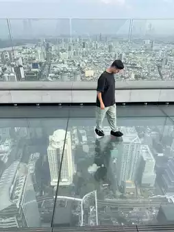 On one side of the observation deck, there is a glass walkway where visitors can wear shoe covers and walk on the reinforced glass, with the entire Bangkok right beneath your feet 👀 Just look straight ahead and avoid looking down deliberately; it’s not scary and actually feels great!