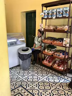 DOI KHAM is a brand established by the Thai Royal Family dedicated to helping farmers in remote mountainous areas become self-sufficient. It is said that all products use natural crops from Northern Thailand. The black coffee inside is rich and aromatic, priced at 100 THB per cup, allowing you to savor the pure flavors from the highlands of Northern Thailand, including various fruit juices like passion fruit juice, durian juice, and soft dried mangoes. At the same time, it contributes to the local farmers' livelihoods.