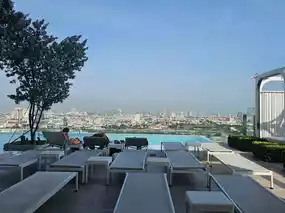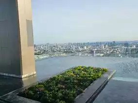 This time it was my birthday trip. We stayed at the following hotel, which has a great location. It is the last station on the airport line, and it only takes 2 stops to get to Siam (very convenient for CentralWorld and Siam Paragon as well). The hotel features 2 infinity pools, known for their unique design. The poolside seamlessly connects with the skyline and views, allowing you to swim while enjoying the city nightscape, providing an immersive experience.