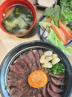 • Kaizen Sushi & Hibachi: Wagyu beef rice bowl with raw egg yolk