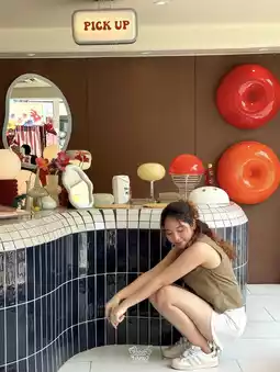 This is "No more headaches," a super cute cafe where you can take photos from every angle.