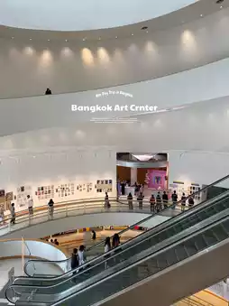 Highlight - There are exhibitions or art activities of all kinds rotating continuously. Every time you come, the event changes, never repetitive. Take the train to BTS National Stadium station, with a connecting walkway into the building. Free admission 🏛️🚝🌎