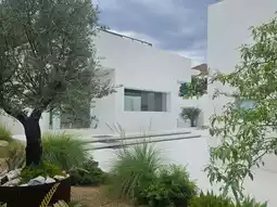 Sandstone table + curved chairs that look minimalistic but very stylish, making every photo look great