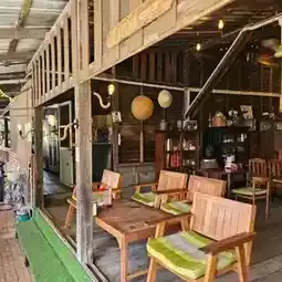 📌 Landmark 👉🏼 It’s an old wooden house located at the foot of Wat Kamphaeng Bang Chak bridge (locals call it Elephant Bridge). Motorcycles can pass on the road in front of the shop. The shop has a waterfall flowing from the roof, visible from any angle.