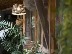 I first visited this place many years ago. The wooden door, covered with vines, was left open as if inviting passersby to escape the sun and step inside. Outside, vines draped over the eaves, casting shadows on wooden chairs and fern pots. The cement floor was still damp from the rain.
