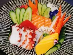 salmon sashimi, and many more ready-to-eat dishes, plus