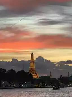 Evening on a 【Chao Phraya River Dinner Cruise】, eating while enjoying the night view was super romantic ✨