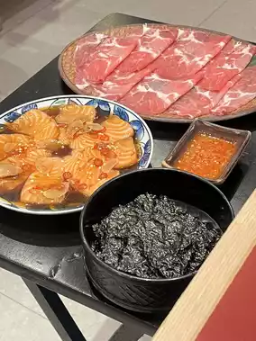 The beef and pork slices are perfectly thin, ready to eat after a quick dip. Served with fresh vegetables and a special house dipping sauce. The highlight is the Japanese sesame sauce, rich and fragrant, perfectly paired with the meat 🫶