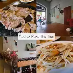 Highlight - A small Thai fusion restaurant with a tuk-tuk parked and decorated in front of the shop, which is also a symbol of Bangkok and Thailand.