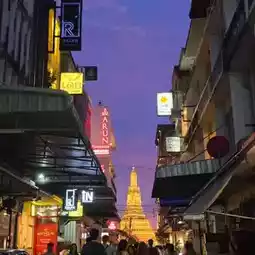 Highlight - Located opposite Wat Arun, it is another beautiful viewpoint of Wat Arun with a clear view of the temple. At night, nearby alleyway restaurants light up their signs, and the illuminated prang of Wat Arun can be seen beautifully.