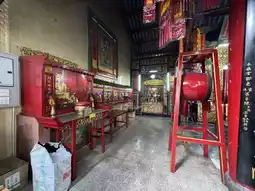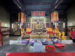 The moment you enter, the air is thick with the scent of incense and the faint sound of temple bells. The altar is adorned with offerings—fruits, flowers, and intricate paper ornaments—while red and gold details wrap the place in a warm glow. The craftsmanship is beautiful, from the carved wooden beams to the painted panels telling old legends.