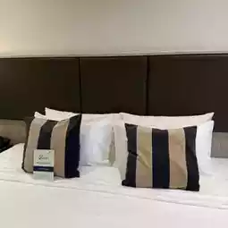 Comfortable bed, minibar, two free bottles of water.