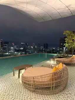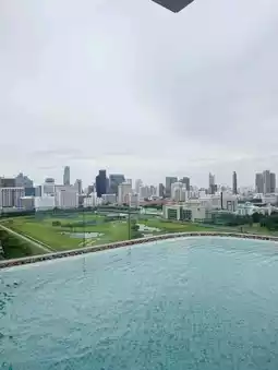 Another favorite spot is the swimming pool on the 16th floor! You get stunning views of both the golf course and CentralWorld. The day I visited, the weather was perfect with a cool breeze. The pool area was quiet and peaceful, ideal for relaxing both day and night. The poolside vibes are simply amazing.
