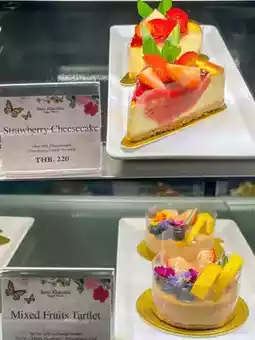 They also offer a wide selection of cakes, including Hidden Klin Cheesecake, Candied Lime Jelly Cheesecake, Ruby Sandwich Cake, Thai Tea Grass Jelly Cake, Banana in Coconut Milk Cake, Taro Lod Chong Cake with Palm Sugar, and Frazier's French Strawberry Cake.