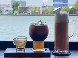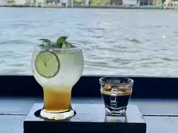 This drink was a highlight. It was served with separate shots of coffee. When poured, it formed a beautiful layer. The base was a refreshing, fragrant orange juice, contrasting with a rich espresso shot. When you drink it, stir it gently or sip it together. The flavor was incredibly refreshing. The sweet and sour notes of the orange and the subtle bitterness of the coffee made it a perfect drink for the hot riverside weather.
