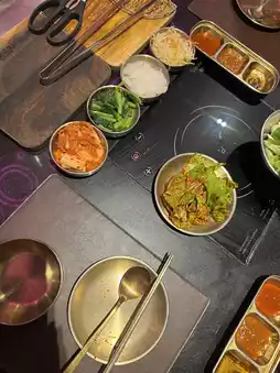 โข Popular dishes include kimchi ramen, cheese steamed eggs, kimchi tofu soup, fried dumplings, and seaweed rice.
