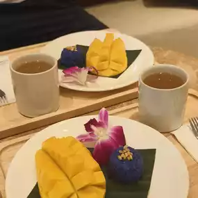 Afterward, they'll serve Thai mango sticky rice 🥭 and hot tea, which is incredibly satisfying! After leaving a review, you'll also receive a cute elephant pendant as a souvenir 🐘.