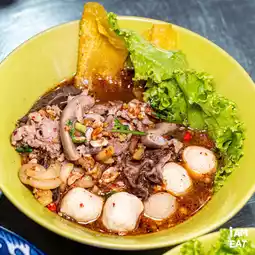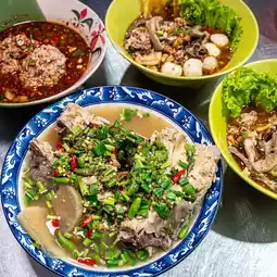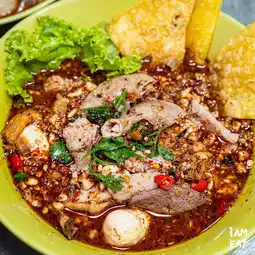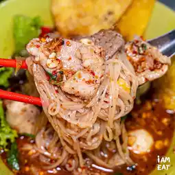 A legendary tom yum noodle shop in the Pinklao area, serving for 28 years, Nai Han's tom yum noodles are delicious and packed with toppings. The tom yum is incredibly spicy. The minced pork tom yum noodles are incredibly generous.