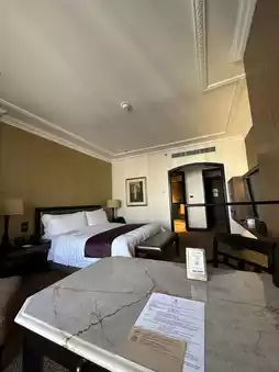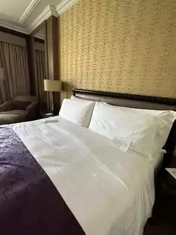 The room is clearly divided into zones: foyer, living room, work desk, and coffee maker. The bed is incredibly soft, and it feels like you're being sucked into it. Waking up is incredibly refreshing. There's a wide selection of pillows to choose from (pillow menu), truly luxurious hotel-like. The bathroom is also stunning, with separate rain showers and bathtubs. The amenities are from THANN, and the scents are incredibly relaxing.
