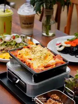 #GetDiscountsWithoutLuck! Grandma Pasta has released a new menu item: Penne Cheese Gochujang Hot Plate🧀. This special menu item is available only until September 15, 2025, at Siam Center.❤️ Replace the tteokbokki noodles with pasta, coated in a rich Korean-style sauce, and topped with stretchy cheese. See how stretchy it is in the picture. Served with Grandma's fried chicken in Gochujang sauce and salad.