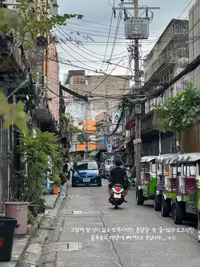 One thing I noticed while traveling solo in Bangkok was how terrible the traffic was. It was so fast it was easier to walk 40 minutes than wait for a taxi. The traffic was also incredibly hectic and crowded. However, if you venture a bit outside the tourist areas and wander the alleys, you'll discover the true essence of Bangkok! It was so peaceful and beautiful... And if you have time, definitely visit Lumpini Park!! The monitor lizards are truly amazing... And please, when you go to Thailand, I always eat pork pad thai at Chu Lai Northeast. The meat was so delicious! ㅜㅜㅜ