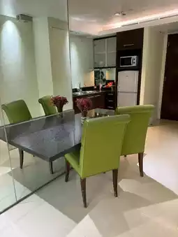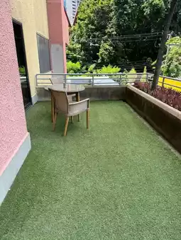 I took the elevator to my room. There's no keycard required. You can just press the floor. Exit the elevator and you're in your room. Upon entering the room, you'll find a kitchen area, a dining table, a work desk, and a bedroom with a large bed. The bathroom has a bathtub and a bidet. The room is very spacious, and the balcony is very spacious. The room was okay, clean, not too old and not too new, just average. For the price of 1900, this size of room is very okay. However, it might be a bit far from the train station.