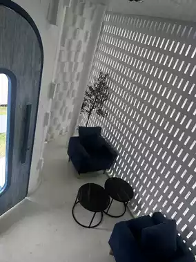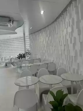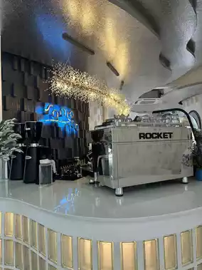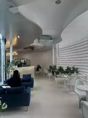 🌳🪜 The café is designed in a Santorini style, offering both indoor and outdoor seating options. It features beautiful photo spots, including a thousand-year-old olive tree perfect for capturing memorable pictures.