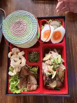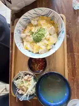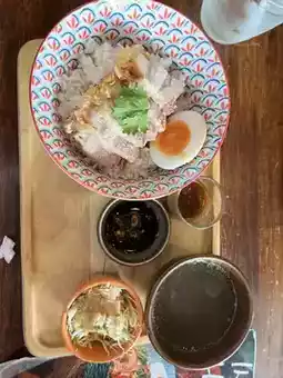 The restaurant offers a variety of single-dish meals (Thai-style donburi) that are popular with customers, such as: