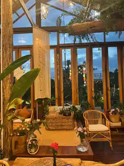 ✨ There are many beautiful photo spots, perfect for those who enjoy the ambiance of a cafe and a natural garden.