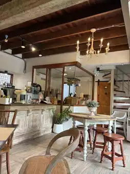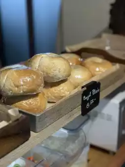 Located in a small house with warm tones, it's decorated with vintage wooden furniture and a lush garden, creating a homey atmosphere. The shop's most distinctive feature is its homemade bagels, which come in both savory and sweet flavors. They sell out quickly. When we visited at 11 a.m., the bread was already sold out. We recommend calling the shop before coming. They also offer fresh coffee, matcha, and decaffeinated drinks, perfect for pairing with bagels or bread. The shop is open Tuesday through Friday from 9:30 AM to 3:00 PM. The atmosphere is wonderful, and we loved it!