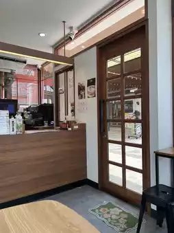 The shop isn't very large, but it's quite cute. Decorated in a warm, soothing brown tone, it has seating for waiting in front, two tables inside, and three counter seats at the bar. The shop is completely glass-enclosed, offering a pleasant view outside.